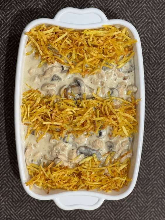 چیکن استراگانف فینگرلی با مرغ تازه و ترد، قارچ داغ و سس خامهای غلیظ درست میشه.