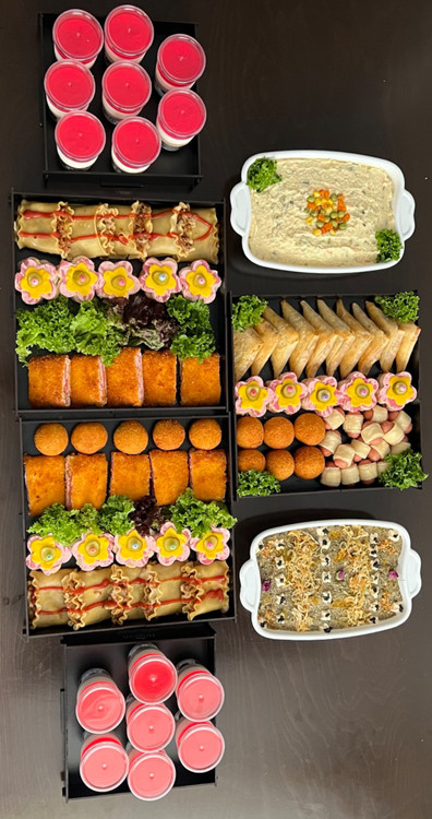 شامل: ۱۰ عدد رول سوخاری_ ۱۰ عدد سمبوسه_۱۰ عدد کلاب کالباس_۱۰ عدد لقمه لازانیا_۱۱ عدد توپک سیب زمینی سوخاری_۱۵ عدد ژله_ ۱ کیلو کشک بادمجان_ ۱ کیلو الویه