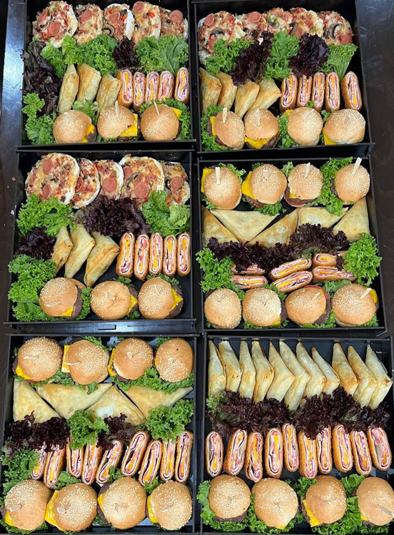 شامل : ۴۰ عدد رول سوخاری ژامبون_ ۳۰ عدد برگر_ ۱۵ عدد پیتزا _ ۳۰ عدد سمبوسه
